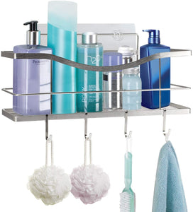 Shower Caddy Basket Shelf with Hooks,Home NeverRust Rustproof Aluminum Shower Caddy, Satin Chrome
