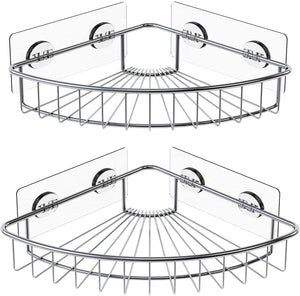 2-Pack Corner Shower Caddy, SUS304 Stainless Steel, Wall Mounted Bathroom Shelf with Adhesive, Storage Organizer for Toilet, Dorm and Kitchen (Silver)