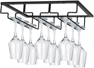 Wine Glass Rack - Under Cabinet Stemware Wine Glass Holder Glasses Storage Hanger Metal Organizer for Bar Kitchen Black